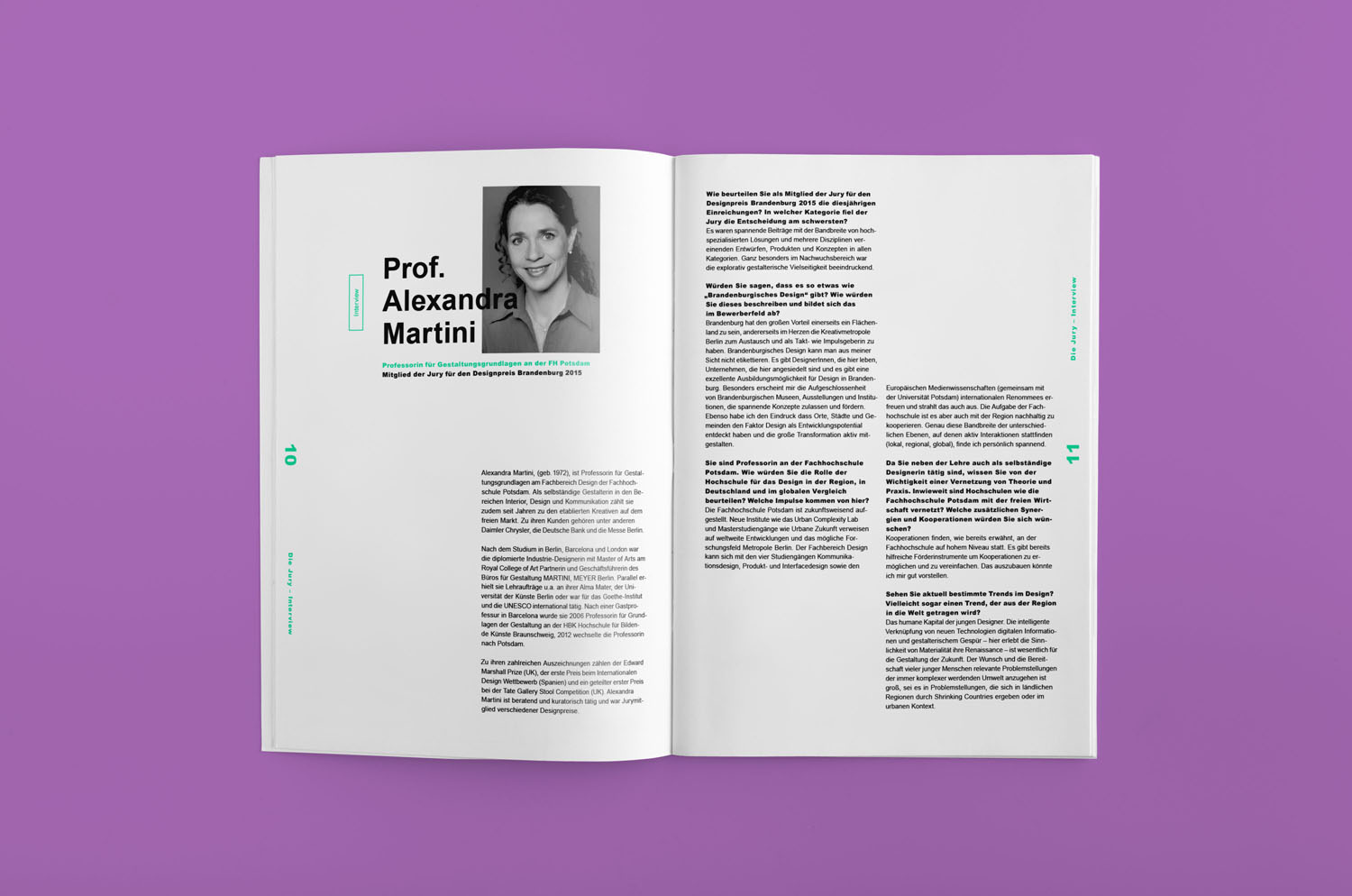 The design concept for the Designpreis Brandenburg 2015 is based on a geometric abstraction of the state of Brandenburg, where the administrative districts and regions are transformed into a modular system of simplified shapes. This visual evolution aims to provide a “framework” for excellence, balancing a contemporary, professional aesthetic with a serious tone befitting a prestigious state award. The core of the identity is a clear, vibrant mint-green palette that ensures high visibility and modern appeal, while the strictly organized typography provides a stable foundation. By deriving the graphic forms directly from the regional map, the design creates an authentic local connection that remains recognizable even in its most abstract form. This systematic approach allows for a flexible yet consistent application across various media, positioning the award as a high-quality distinction that celebrates the creative and structural diversity of the region.