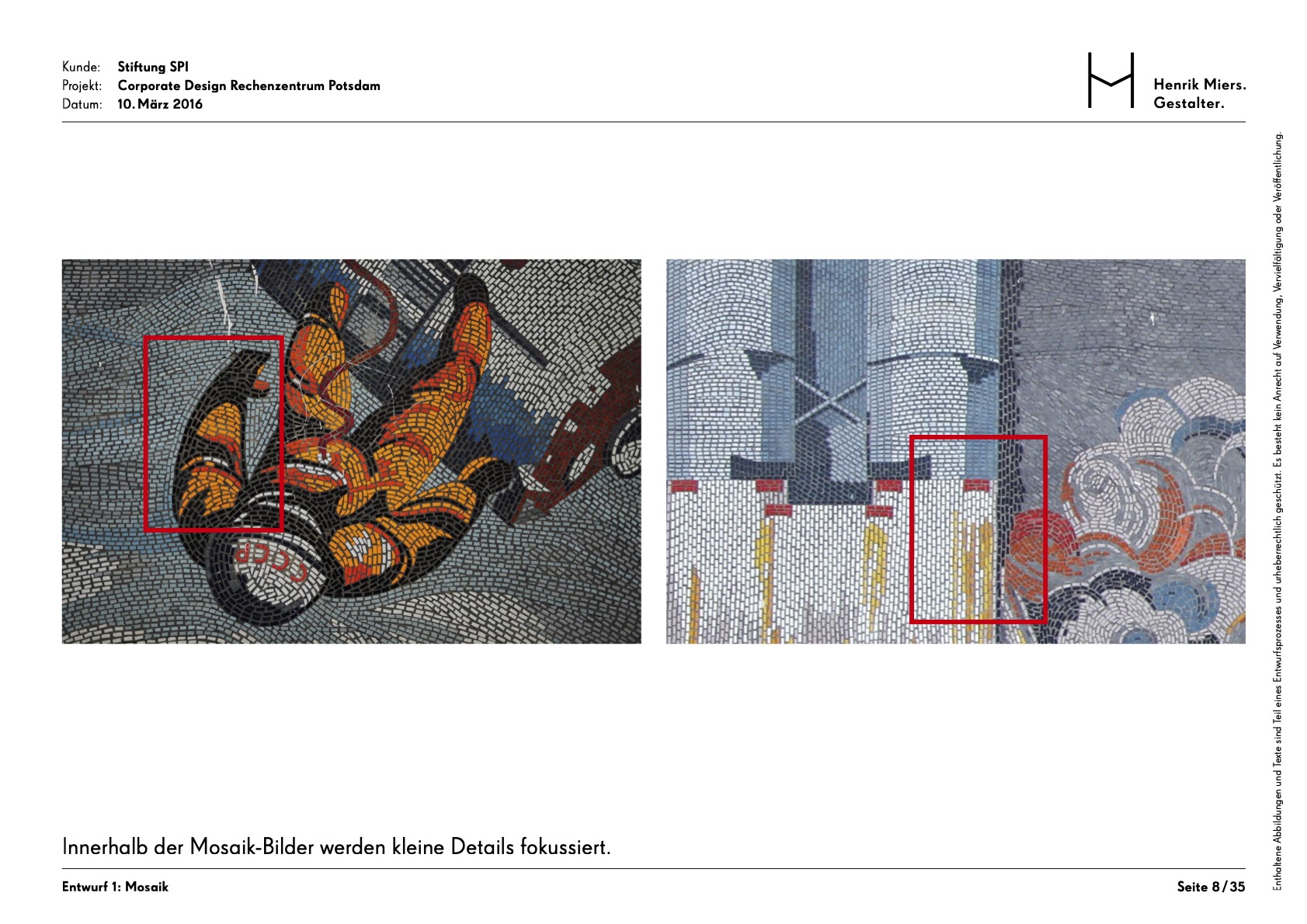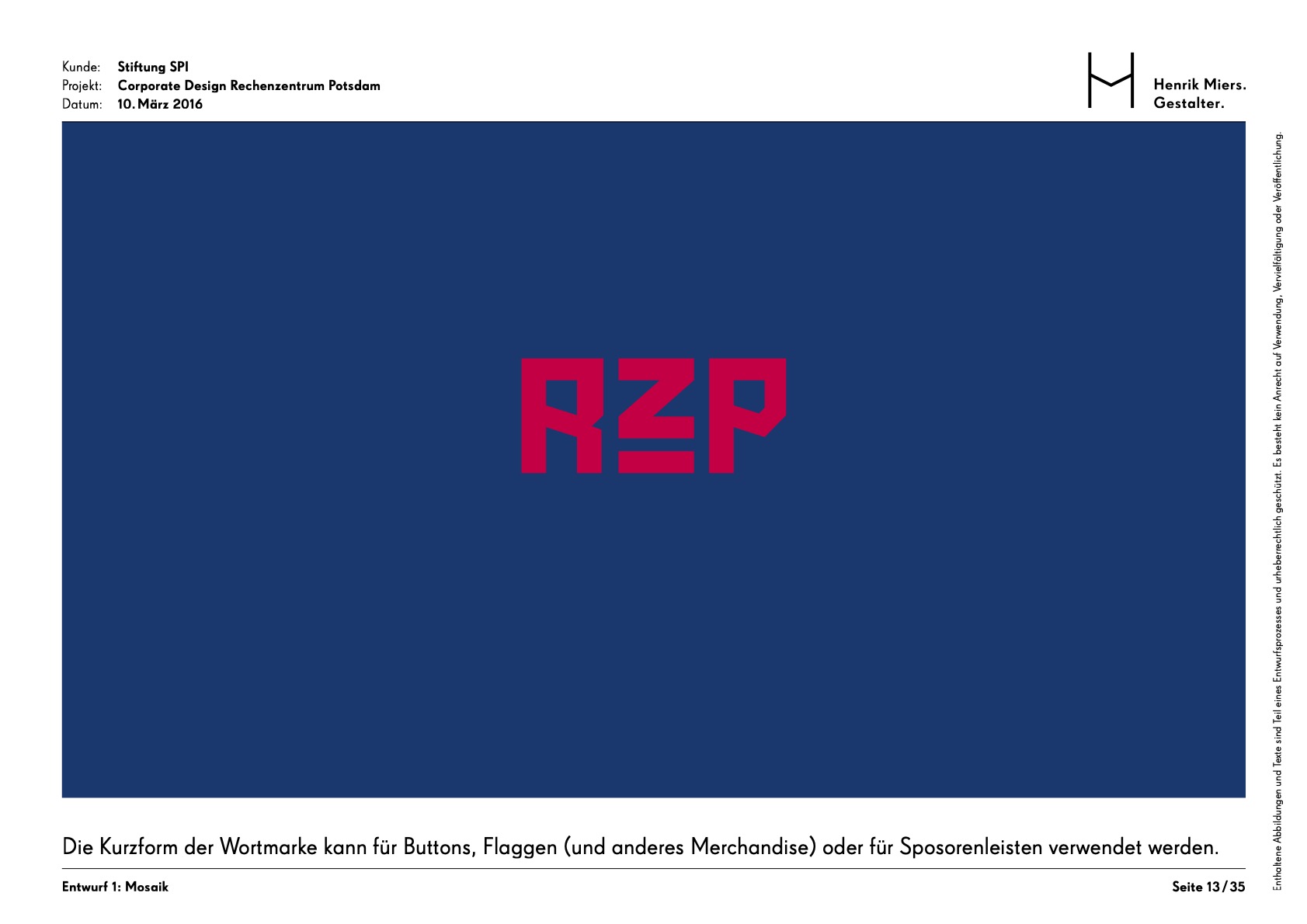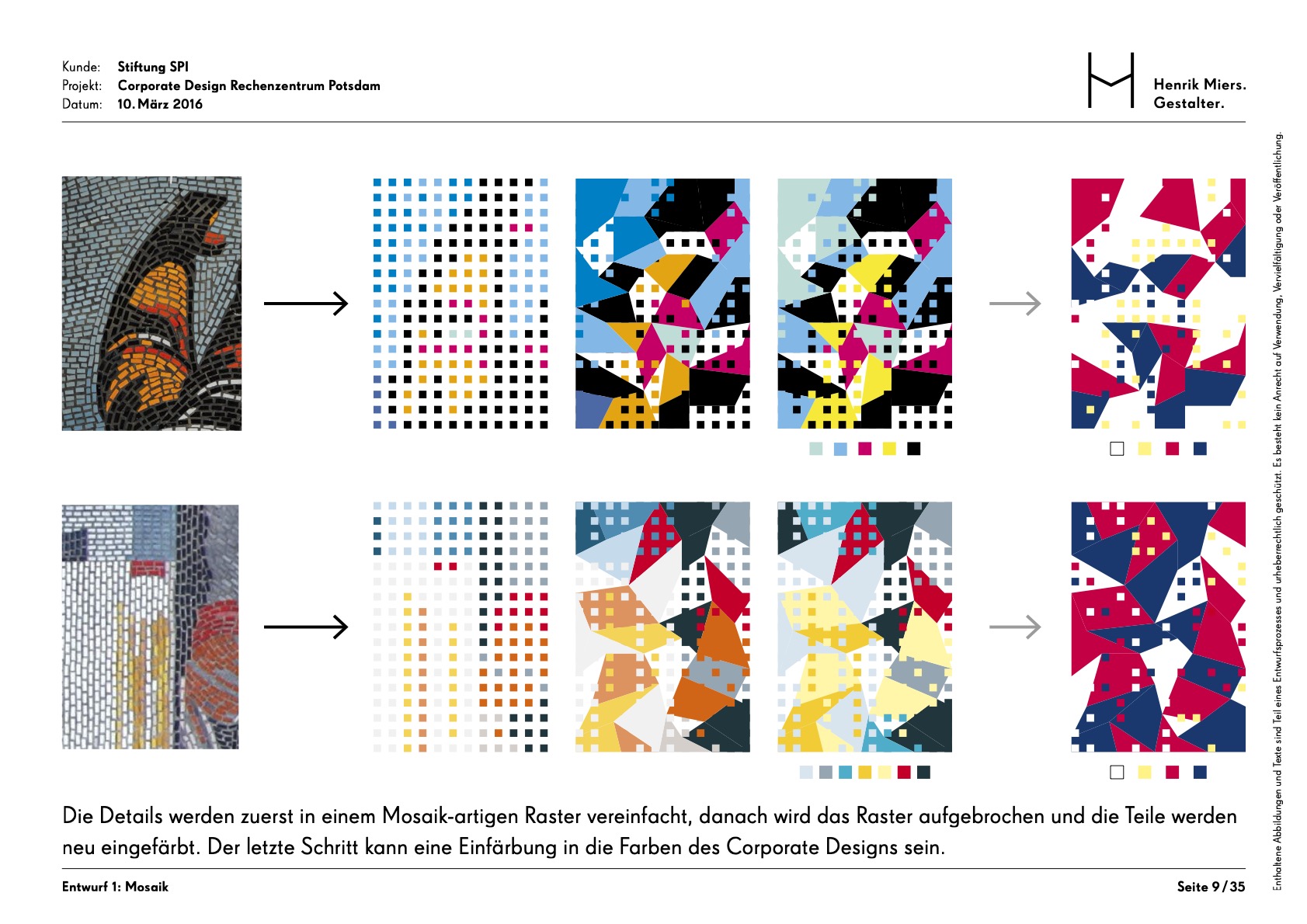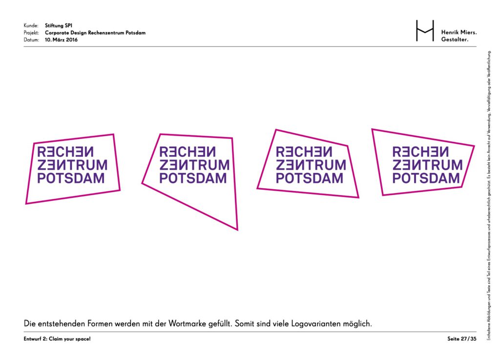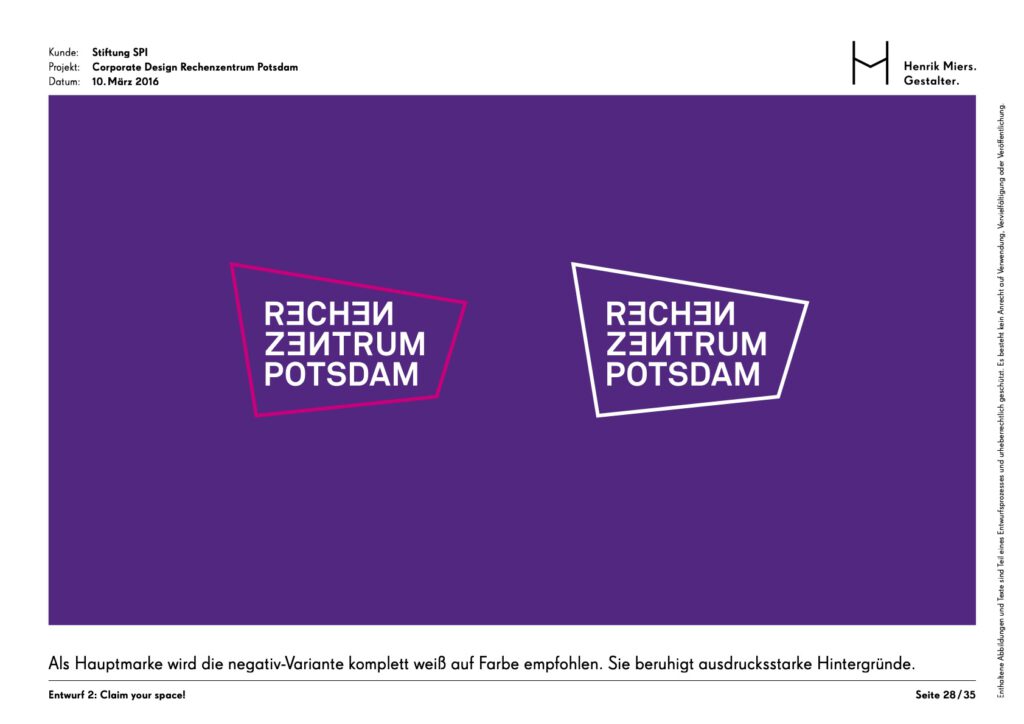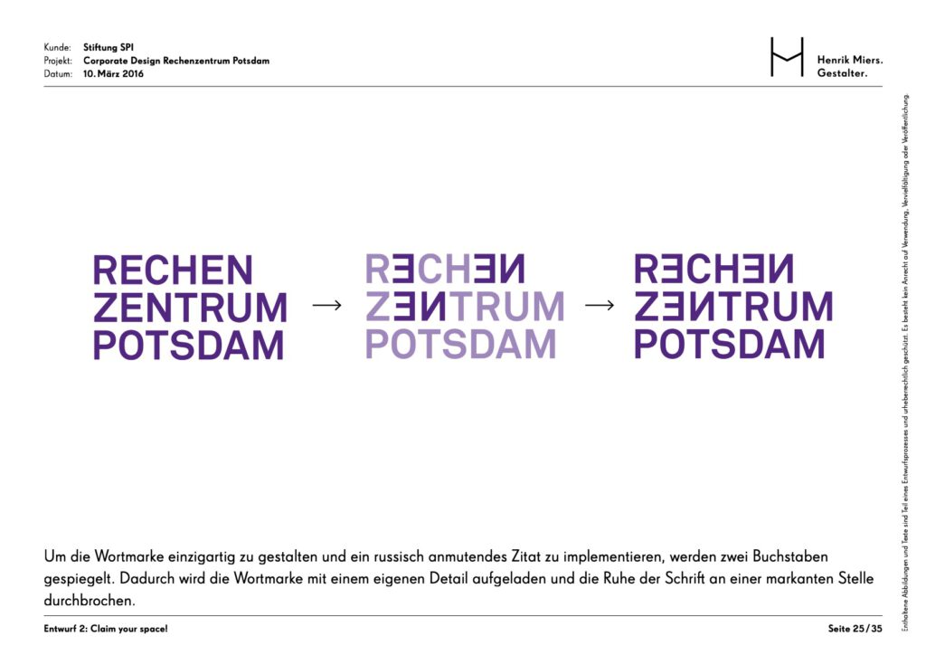 The Rechenzentrum as a creative hub in the heart of Potsdam was given a visual identity through the development of a corporate design. The building’s unmistakable hallmark is the facade mosaic, which is also reflected in an abstracted form within the brand identity.